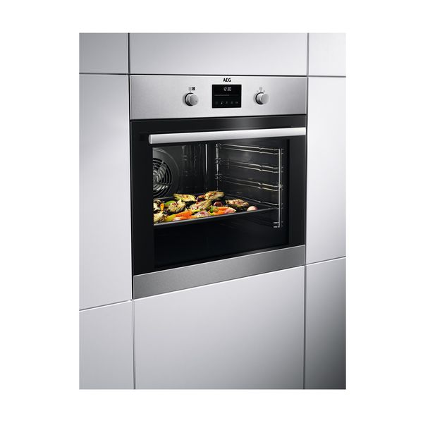 Εντοιχιζόμενος φούρνος BPS351161M από την εταιρεία AEG, με χωρητικότητα 72 lt, με λειτουργία PlusSteam, πυρολυτικό καθαρισμό για εύκολο καθαρισμό του φούρνο σου, Hot Air για ομοιόμορφο μαγείρεμα καθώς και οθόνη LED EXPlore με πλήκτρα αφής. Τέλος, διαθέτει και ασφάλεια παιδικού κλειδώματος για την αποφυγή ατυχημάτων.