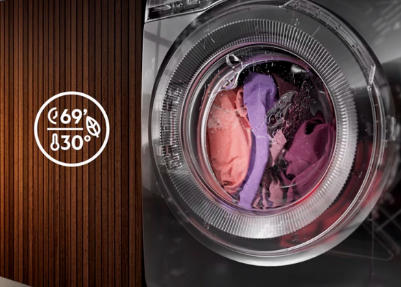 *Εσωτερικές δοκιμές χρόνου, κατανάλωσης νερού και ενέργειας ενός κύκλου βαμβακερών στους 30°C, με PreciseWash για 1kg, έναντι μέγιστου φορτίου.