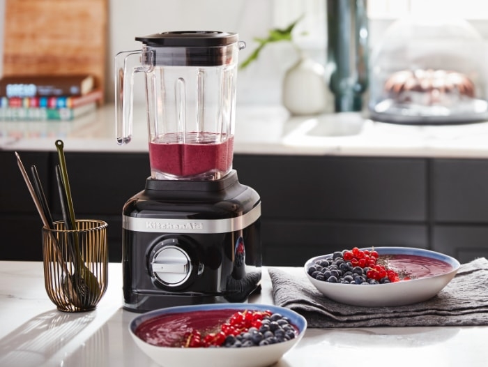 Carefully crafted with a sleek design in durable plastic with a die-cast metal knob, the blender is built to enjoy for years to come. Its BPA-free jar is robust and easy to clean, with a handy pour spout and comfortable handle. Decide which colour will look best in your kitchen and start dreaming of what you’ll make first.