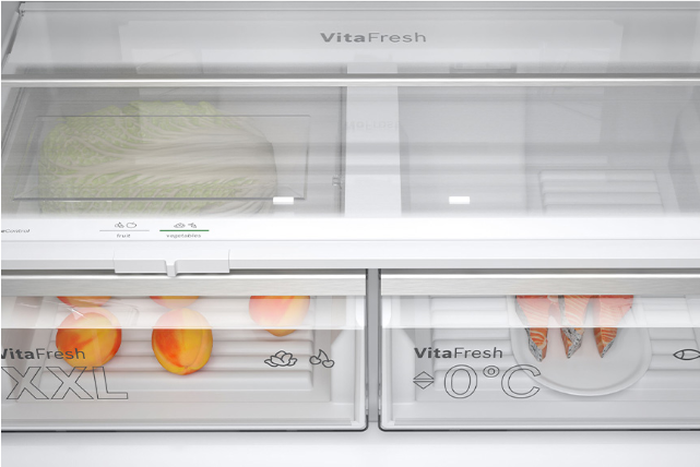 With the VitaFresh XXL drawers, keep all your food fresh for a longer period of time. Regulate humidity for fruits and vegetables, and preserve fish and meat at extremely low temperatures. Your favorite foods will be there for you fresh for longer.