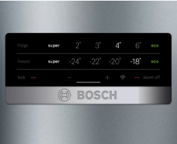 Bosch fridge-freezer with a combined capacity of 466Lt with EasyAccess shelves for unobstructed visibility inside and Dynamic MultiAirFlow for even distribution of cooling.