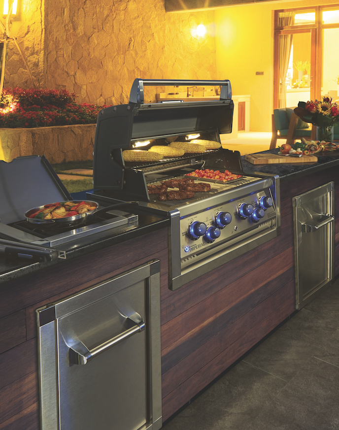 The Broil King® Imperial™ S 590 Built-In features 4,032 sq cm of primary cooking surface and includes 5 stainless steel Dual-Tube™ burners, 5 professional cast stainless steel cooking grids, warming rack, stainless steel Flav-R-Wave™ cooking system, electronic igniter, oven lights, illuminated control knobs and stainless steel ignition switch.