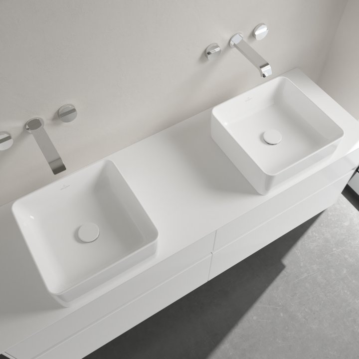 The Collaro washbasins from Villeroy & Boch let you experience the fine balance between a stylish look and practical features in the bathroom. The large washbasin range consists of various vanity and surface-mounted washbasins made from high-quality TitanCeram. Very thin walls add a touch of lightness to the bathroom while their characteristic design edge also serves as a splashguard and protective rim.