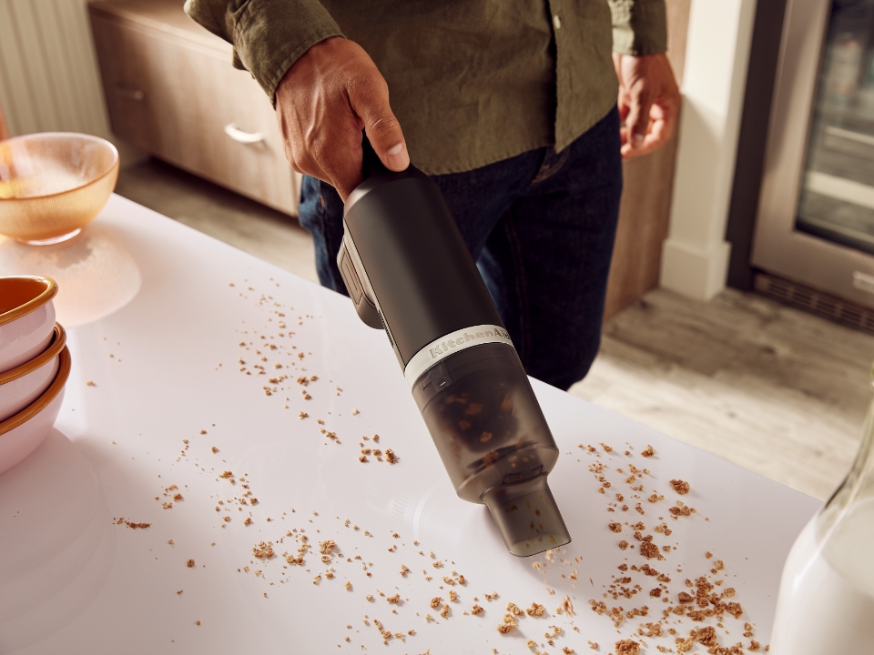 This handheld vacuum is cord-free! It’s compatible with the rechargeable battery* that powers this and all the other appliances in the KitchenAid Go Cordless System. Eliminate cord hassles and enjoy creating wherever and however you like.