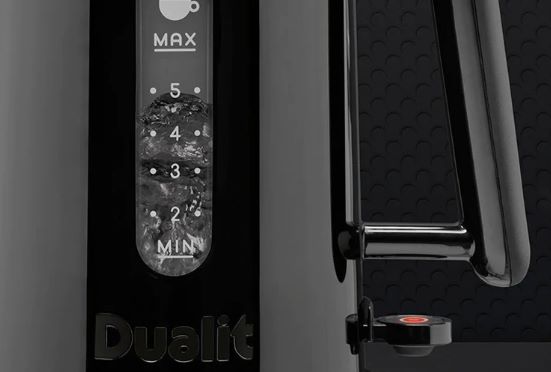 The Studio by Dualit™ Kettle is cleverly designed with two measuring windows for easy viewing. For avid tea drinkers, one side features a cup level indicator and the other side measures the water in litres – ideal for when you are cooking.