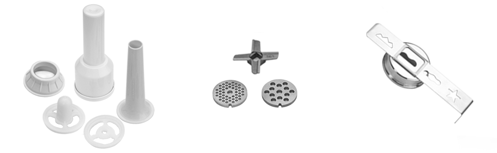- Including 2 grinding discs for chunky meat, sausage filing attachment, pusher, food tray, cookie attachment, kebbe attachment for oriental cuisine