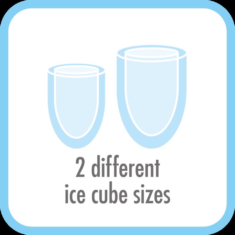 - Bullet-shaped ice cubes with choice of two sizes: small (Ø 11 mm) and large (Ø 27 mm)