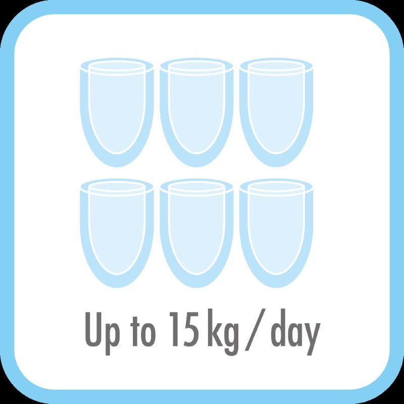 (7 up to 15 minutes) and up to 15 kg/day (up to 75 ice cubes/hour)