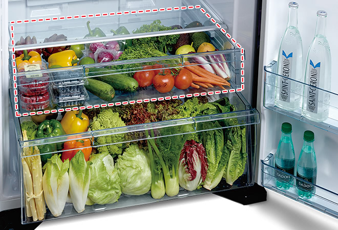 Select the Vegetable mode of the Fresh Select and it becomes a second storage area for vegetables, adding an extra space.