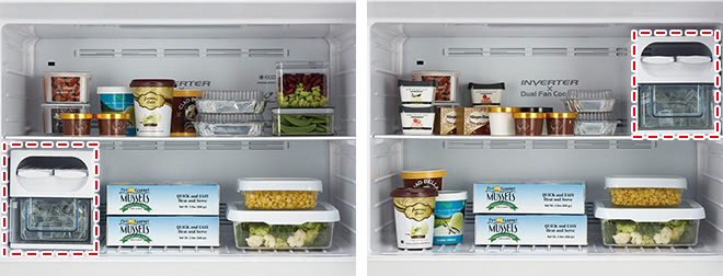 You can move the ice tray or even remove it for more convenient and efficient use of storage space.