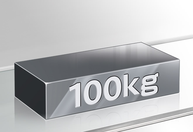 Scratch-proof and heat-resistant, the tempered glass shelves can even hold up to 100kg* each.