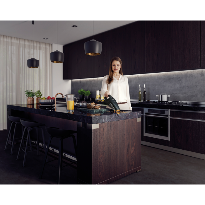 Ξεχάστε τα διαλείμματα και τη δυσκίνητη αλλαγή των διαφορετικών ακροφύσιων όταν θέλετε να φτάσετε σε γωνίες, μεταξύ μαξιλαριών καναπέδων ή σε συρτάρια κουζίνας. Με το ενσωματωμένο ακροφύσιο στενών κοιλοτήτων Easy Reach™ που μπορείτε να τραβήξετε έξω ενώ σκουπίζετε, δεν θα χρειαστεί πλέον να διακόψετε το καθάρισμα.