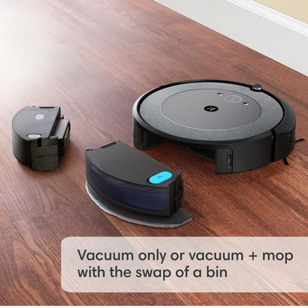 The Roomba Combo® i5 robot vacuum and mop navigates in neat rows to thoroughly clean room by room. Swap in the Roomba Combo® Bin and it wet mops dirt and dust as it picks up debris.