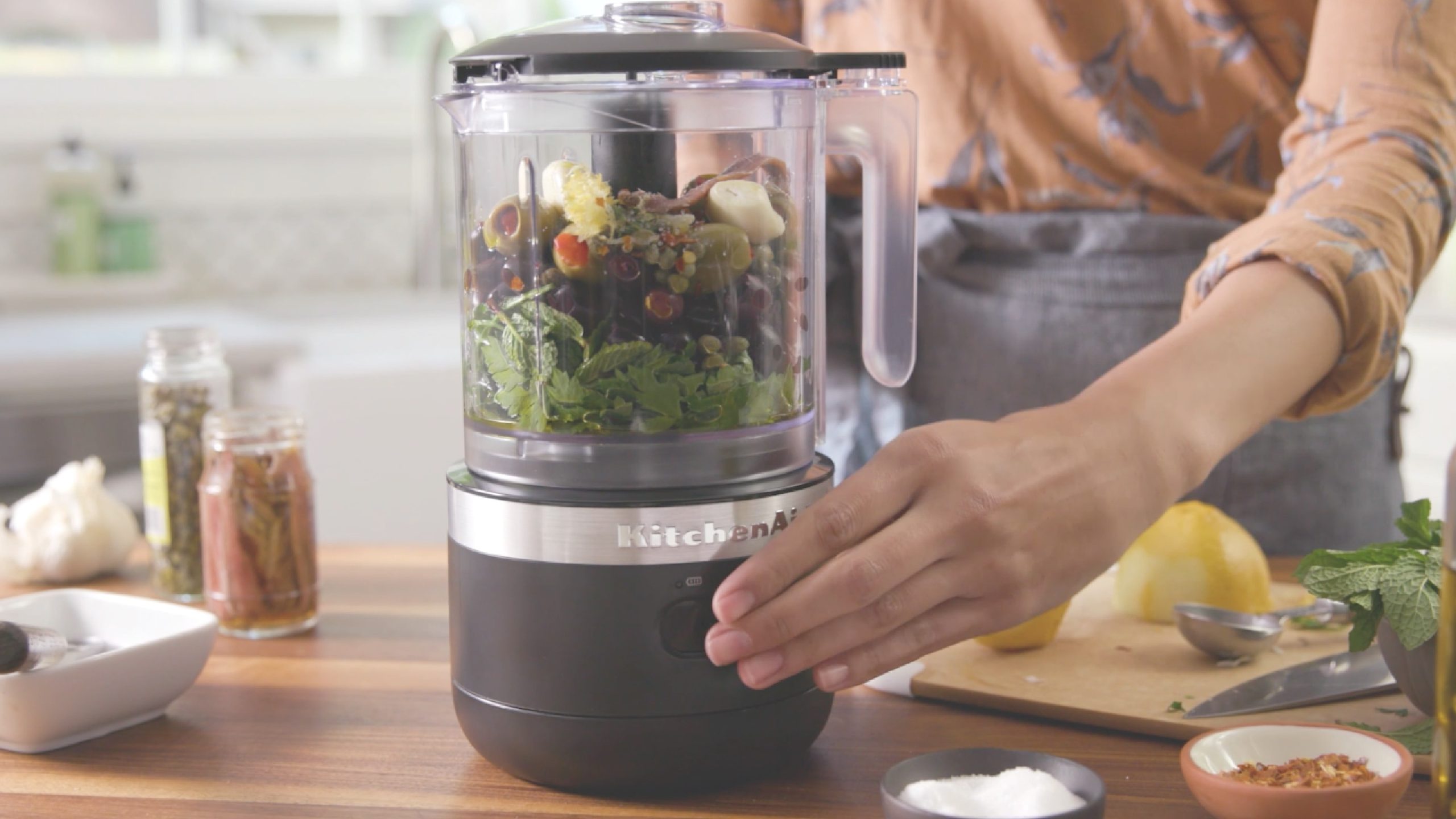 Achieve the perfect texture with the cordless food chopper from KitchenAid.