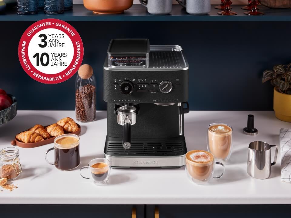 With its compact, metal-clad construction, the semi automatic espresso machine with burr grinder is designed to integrate seamlessly into your home. Its durable build brings you beauty, precision and years of quality, backed by a 3-year guarantee and 10 years of reparability. Choose a premium colour to complement the vibe of your interiors. Certified by Quiet Mark, it’s one of the quietest machines its category, helping to keep a calm home. Everything you love about espresso is here — right on your countertop.