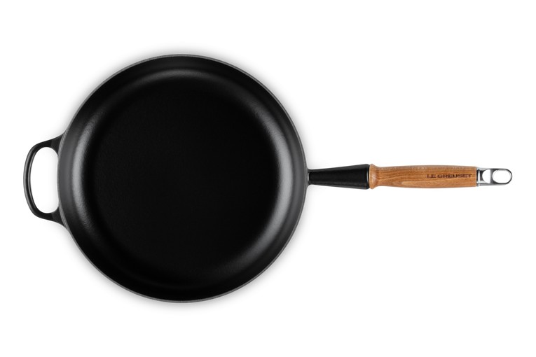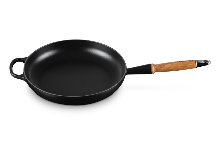 Le Creuset – Satin Black Cast Iron Pan Wooden Handle 28cm