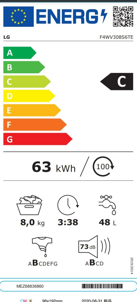 *Η δοκιμή έγινε από την Intertek τον Μάρτιο του 2019. Κύκλος βαμβακερών βάρους 2 κιλών (εσώρουχα), σε σύγκριση με τον συμβατικό κύκλο βαμβακερών της LG (F4V9RWP2W έναντι FC1450S2W). Τα αποτελέσματα ενδέχεται να διαφέρουν ανάλογα με τα ρούχα και το περιβάλλον.