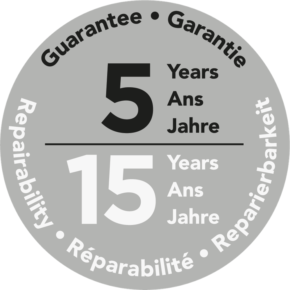5 years guarantee + 15 repairability