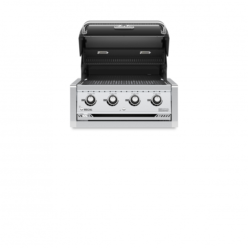 The Broil King® Regal™ 420 Built-In features 3226 sq. cm of primary cooking surface and includes 4 stainless steel Dual-Tube™ burners, solid stainless steel 9mm rod cooking grids, warming rack, stainless steel Flav-R-Wave™ cooking system, electronic igniter, and stainless steel ignition switch