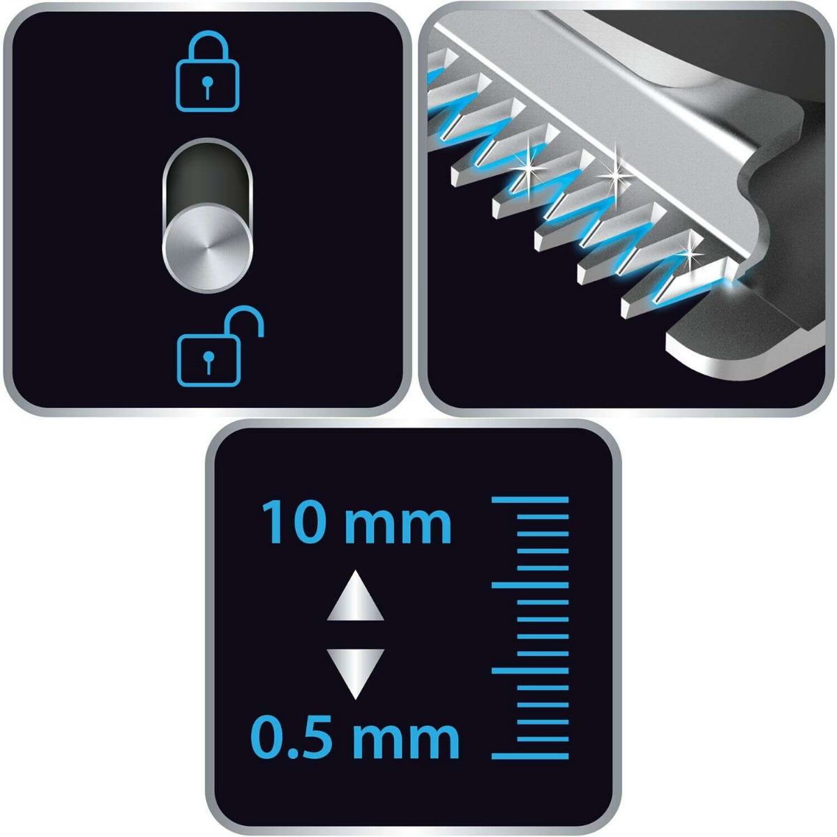 Οι αιχμηρές αυτοακονιζόμενες λεπίδες από ανοξείδωτο ατσάλι και ποικιλία ρυθμίσεων ακριβείας, εξασφαλίζουν τέλεια απόδοση σε κάθε χρήση!
