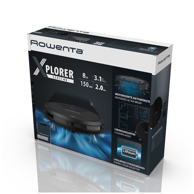 <div class=”p”><span>Combining reliable technology with highly efficient cleaning performance, the Rowenta X-Plorer Series 45 Robotic Vacuum Cleaner is a convenient cleaning solution that covers your entire home with total ease. This automatic vacuum cleaner that vacuums everywhere, combines advanced sensors to prevent collisions and accidents with a 3-in-1 cleaning action: two side brushes for corners and hard-to-reach places, a turbo brush for thorough cleaning of hair and fluff and a reliable motor for high suction power . Plus, it comes equipped with three navigation modes – Auto, Auto Express, and Wall-Follow – to clean even complex areas, remove dust along walls and baseboards, and more. The powerful lithium-ion battery offers an impressive autonomy of up to 150 minutes.Finally, this robot vacuum cleaner is very intuitive and easy to use: once connected to the app, you can easily plan and personalize your cleaning, wherever and whenever you want. It’s even compatible with voice assistants!</span></div>