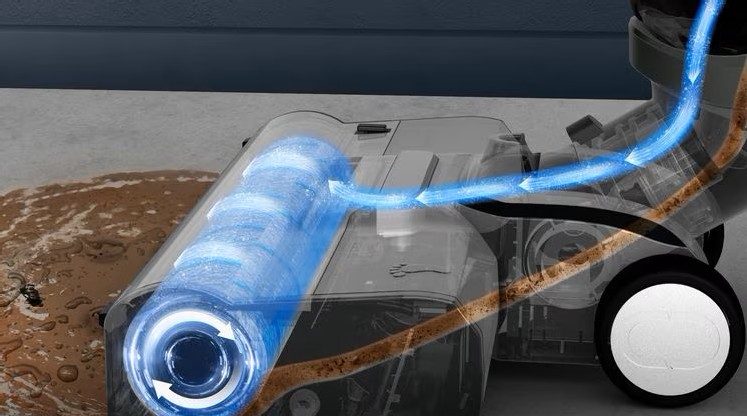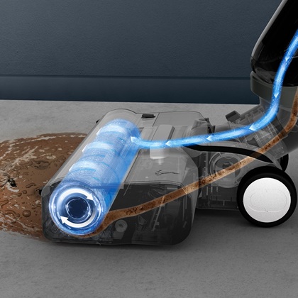 With automatic detection of dirt and debris, featuring a color display and instant adjustment of the roller rotation speed and water flow for perfect cleaning results. Smart detection of dirt and debris with color indicators on the LED display—red for dirt and blue for clean surfaces—as well as automatic adjustment of the roller rotation speed and water flow for a perfect, personalized cleaning experience that leaves your home spotless.