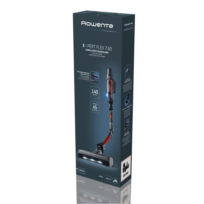 Designed to offer a new and improved cleaning experience, the Rowenta X-PERT 7.60 rechargeable Stick vacuum cleaner keeps your home spotless from floor to ceiling. The powerful 140W motor is combined with a high-performance LED suction pad for deep cleaning on all floors, carpets and rugs. It has never been easier to achieve perfect cleaning results, with cordless operation and a comfortable, ergonomic and lightweight design — just 1.2 kg in handheld mode.