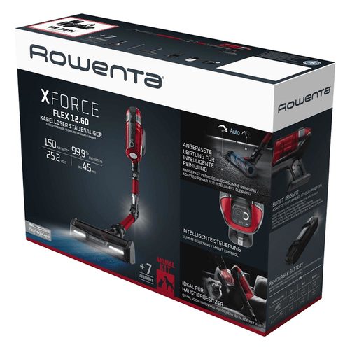 Η επαναφορτιζόμενη σκούπα stick Rowenta XForce Flex 12.60 προσφέρει μια εντελώς νέα εμπειρία σκουπίσματος, συνδυάζοντας την εξαιρετική απόδοση με την απόλυτη ευελιξία. Η μεγάλη ισχύς απορρόφησης των 150 Air Watt* εξασφαλίζει αποδοτικό σκούπισμα σε καθημερινή βάση και η slide-in μπαταρία προσφέρει εντυπωσιακή αυτονομία για 45 λεπτά**. Ανακαλύψτε μια μοναδική εμπειρία σκουπίσματος που γίνεται ακόμη καλύτερη χάρη στις τεχνολογίες που αποτελούν σήμα κατατεθέν της Rowenta: Τεχνολογία Flex που σας επιτρέπει να σκουπίζετε 4 φορές πιο μακριά*** κάτω από χαμηλά έπιπλα, χωρίς να σκύβετε, έξυπνη οθόνη ελέγχου σε πραγματικό χρόνο, αυτόματη προσαρμογή της ισχύος απορρόφησης ανάλογα με τον τύπο του δαπέδου και πολλά ακόμα.