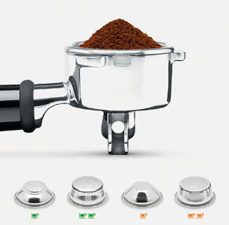 Full bodied coffee with rich and complex flavours is created using the ideal dose of 18g of freshly ground beans delivered by a professional style 54mm stainless steel portafilter.
