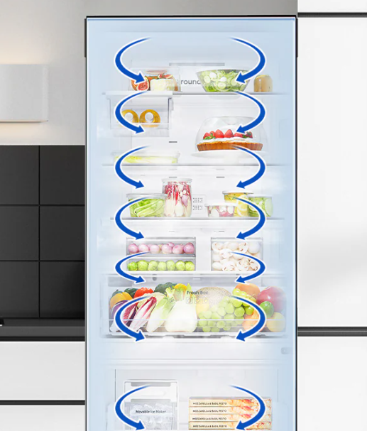 Cooling Type: All Around Cooling makes the cooling cycle more effective and efficient, resulting in maintaining a constant temperature in each shelf & drawer