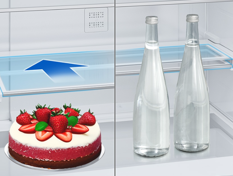 Store large and bulky items efficiently and minimise wasted fridge space. A 2-motion folding shelf slides in and out so you can store tall bottles and containers; it can easily fold in half to make room for large and bulky items.