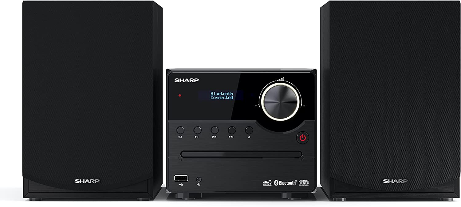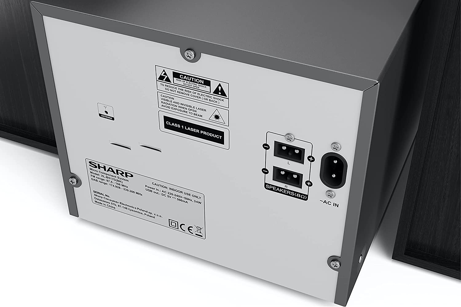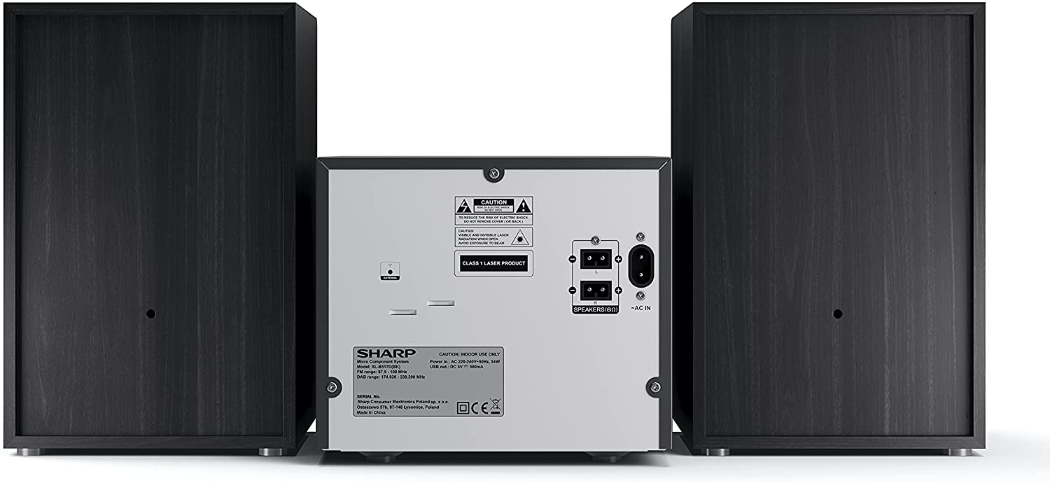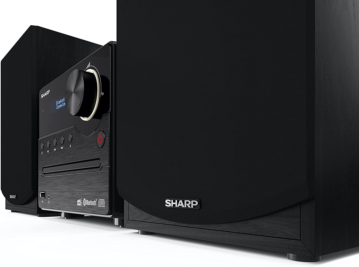 SHARP XL-B517D(BK) Micro Hi-Fi Sound System Stereo with DAB Radio, DAB+, FM, Bluetooth, CD-MP3, USB Playback, Wooden Speakers, 45W – Black