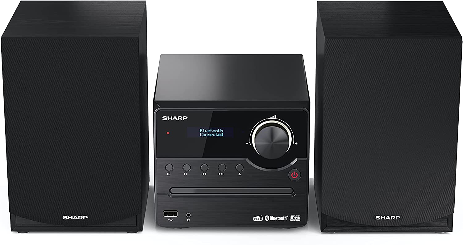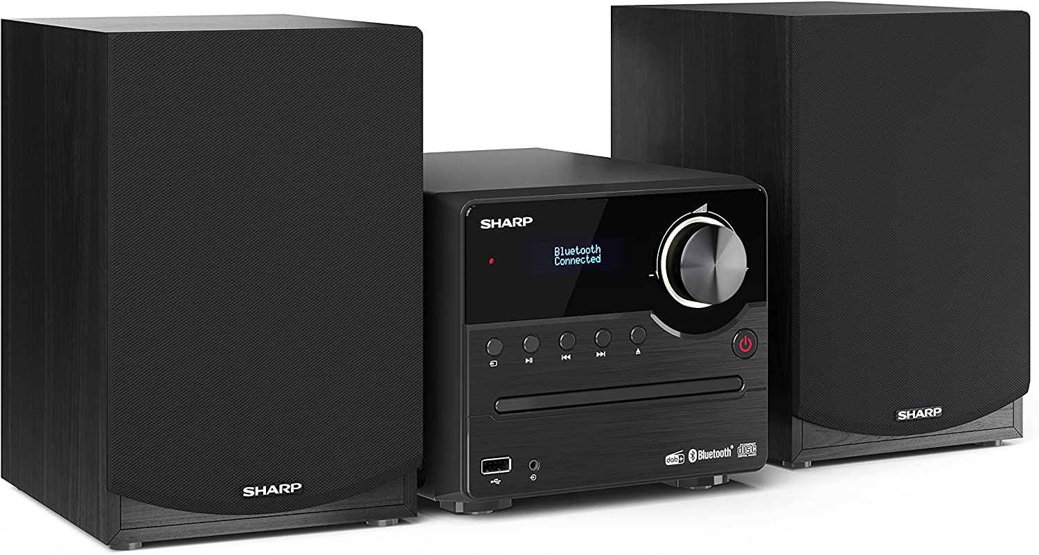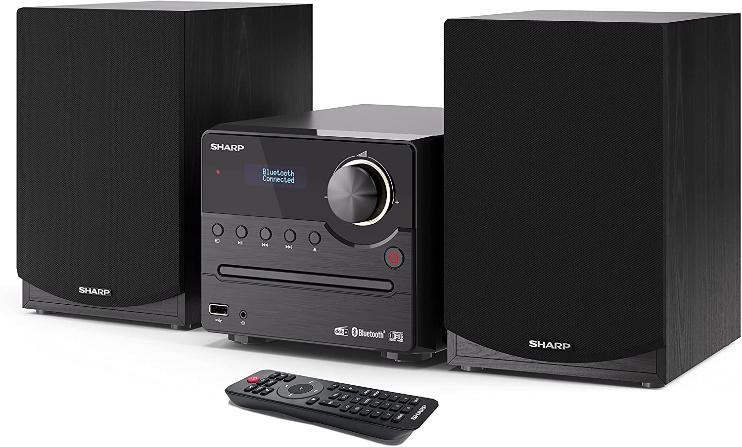 SHARP XL-B517D(BK) Micro Hi-Fi Sound System Stereo with DAB Radio, DAB+, FM, Bluetooth, CD-MP3, USB Playback, Wooden Speakers, 45W – Black