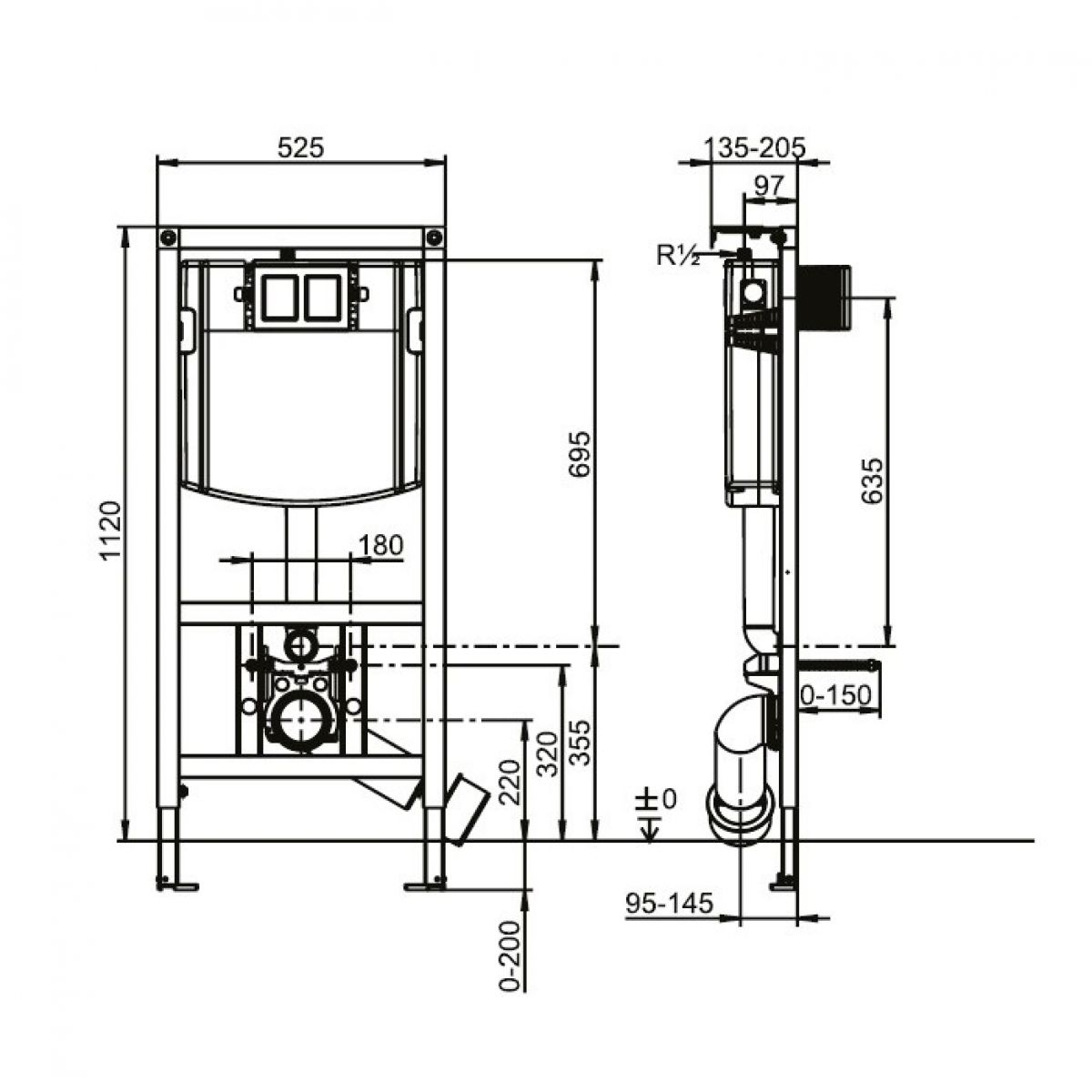 Villeroy and Boch are a leading luxury brand specialising in bathroom fittings and their collection of cisterns and cistern frame packs are among some of the best quality available on the market. This frame and cistern pack is the 1.12m high model, pre-assembled with a robust powder-coated steel frame and self-supporting feet. Additional wall brackets are included to adhere the top of the frame to a wall. Also included are the WC retaining bolts which adjust to 180mm, making this suitable for almost any standard wall mounted WC.